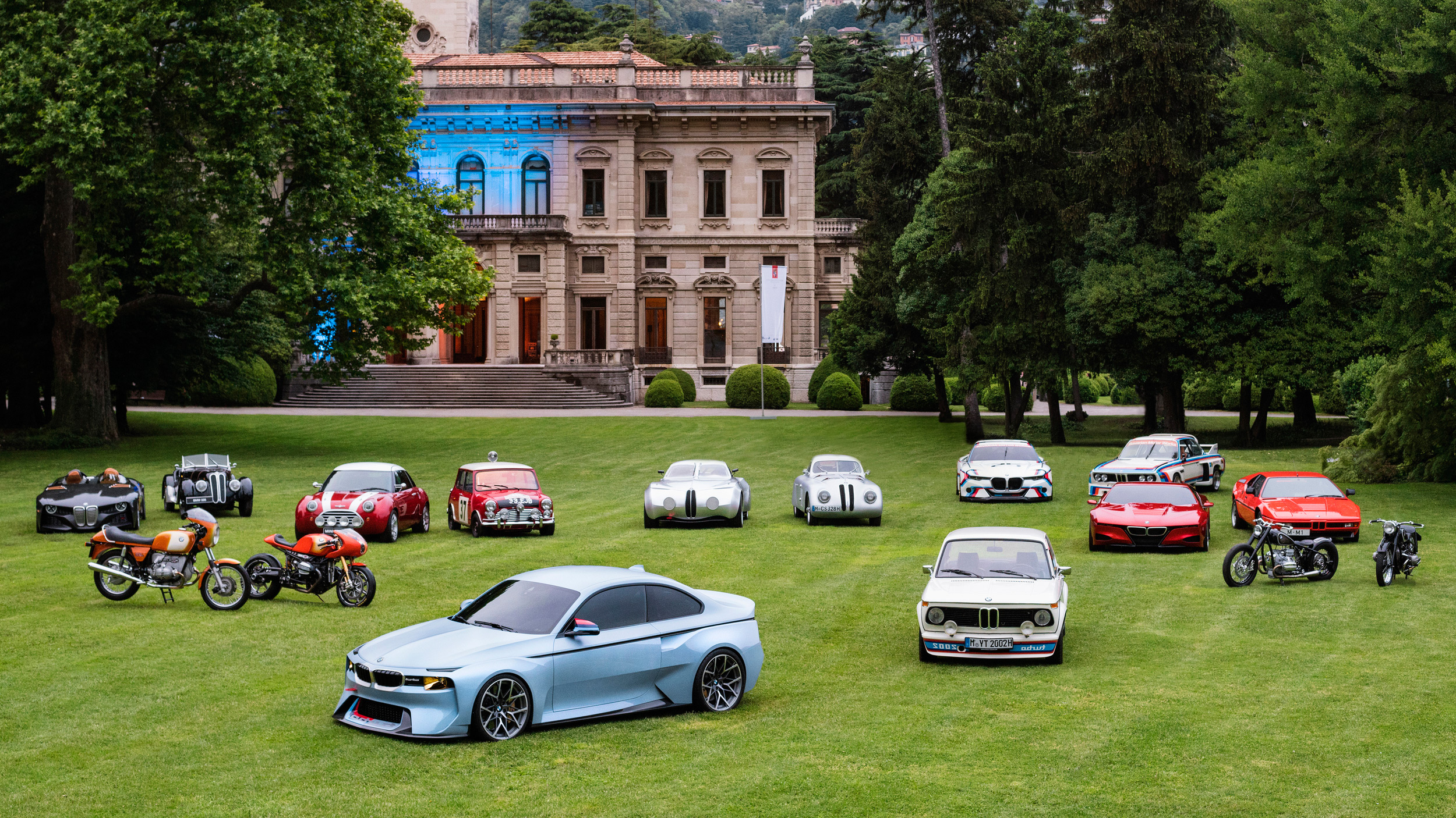 So if you like the idea of over-designed, one-off show cars that see the light of day for just a few hours over one weekend before being shut away in a warehouse for years, here’s a photo of every BMW Hommage vehicle in its natural habitat- the manicured lawn of some mansion in Italy. Enjoy!